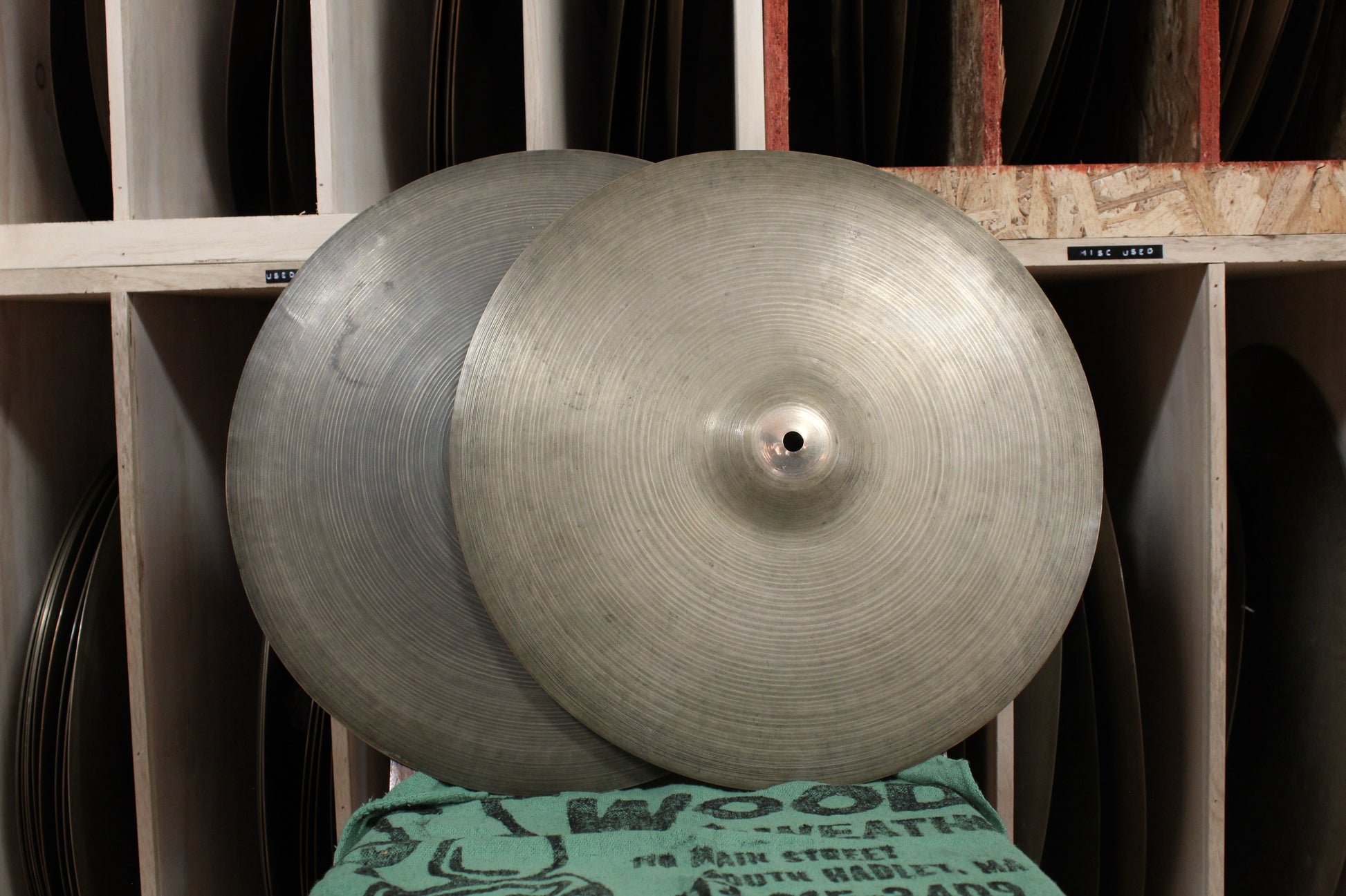 Both cymbals show visible wear, with plenty of patina throughout, prominent warping on the edges, and scattered dings and fleabites. Top hat 791g also shows a few small cracks stemming from the bell hole. While both cymbals show a similar bend on edges, the thin weight still allows them to play well and doesn't effect footwork in a very noticable way.