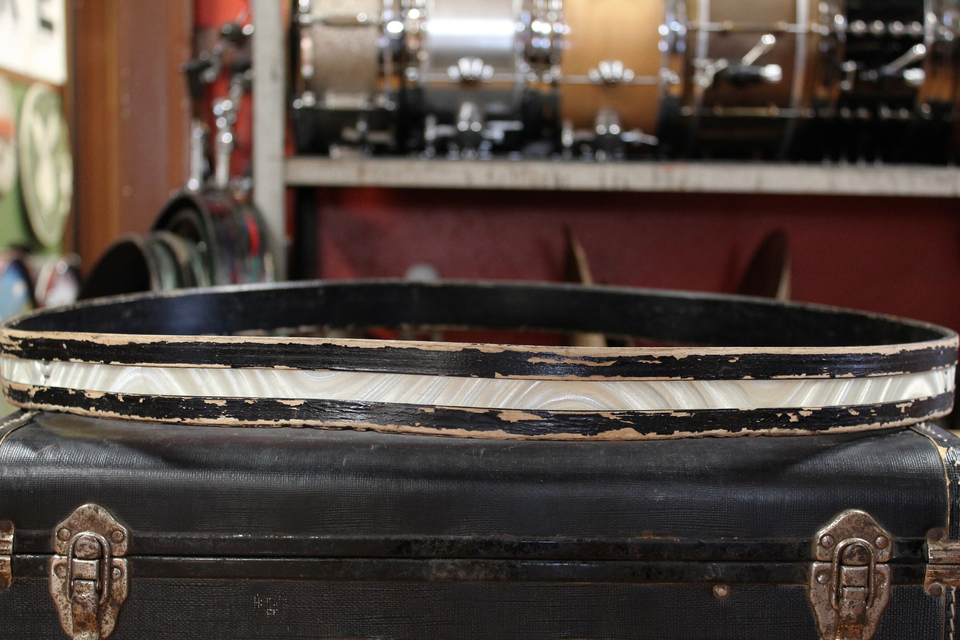 1970s Ludwig 22 Inch Wood Bass Drum Hoops with Silver Astro Inlay