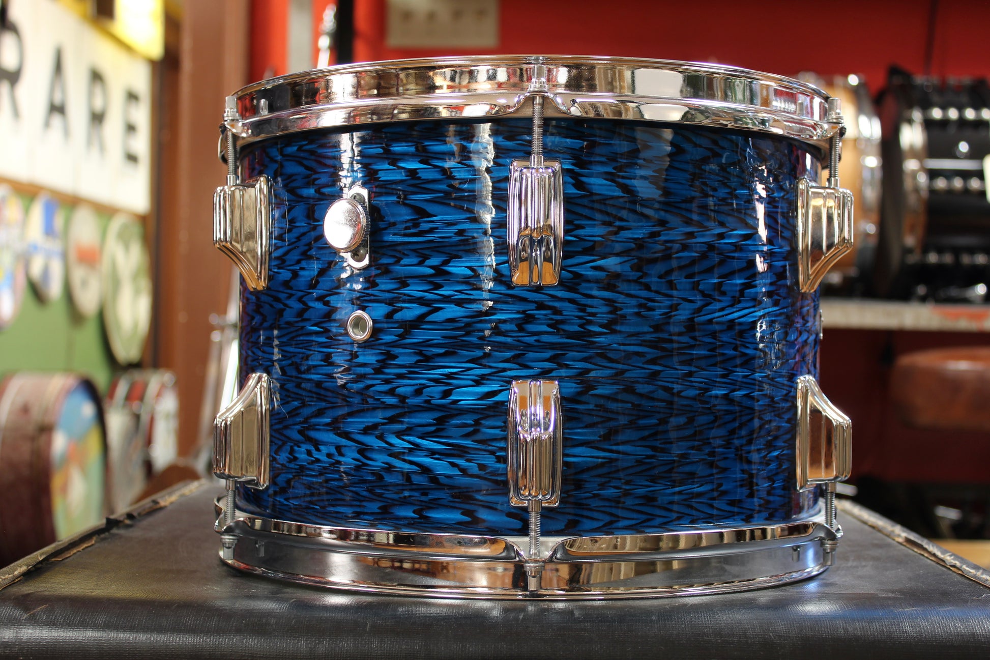 The 13" tom has a split in the wrap above a bottom lug on one panel (See Photos). Other then that, wrap is in excellent condition