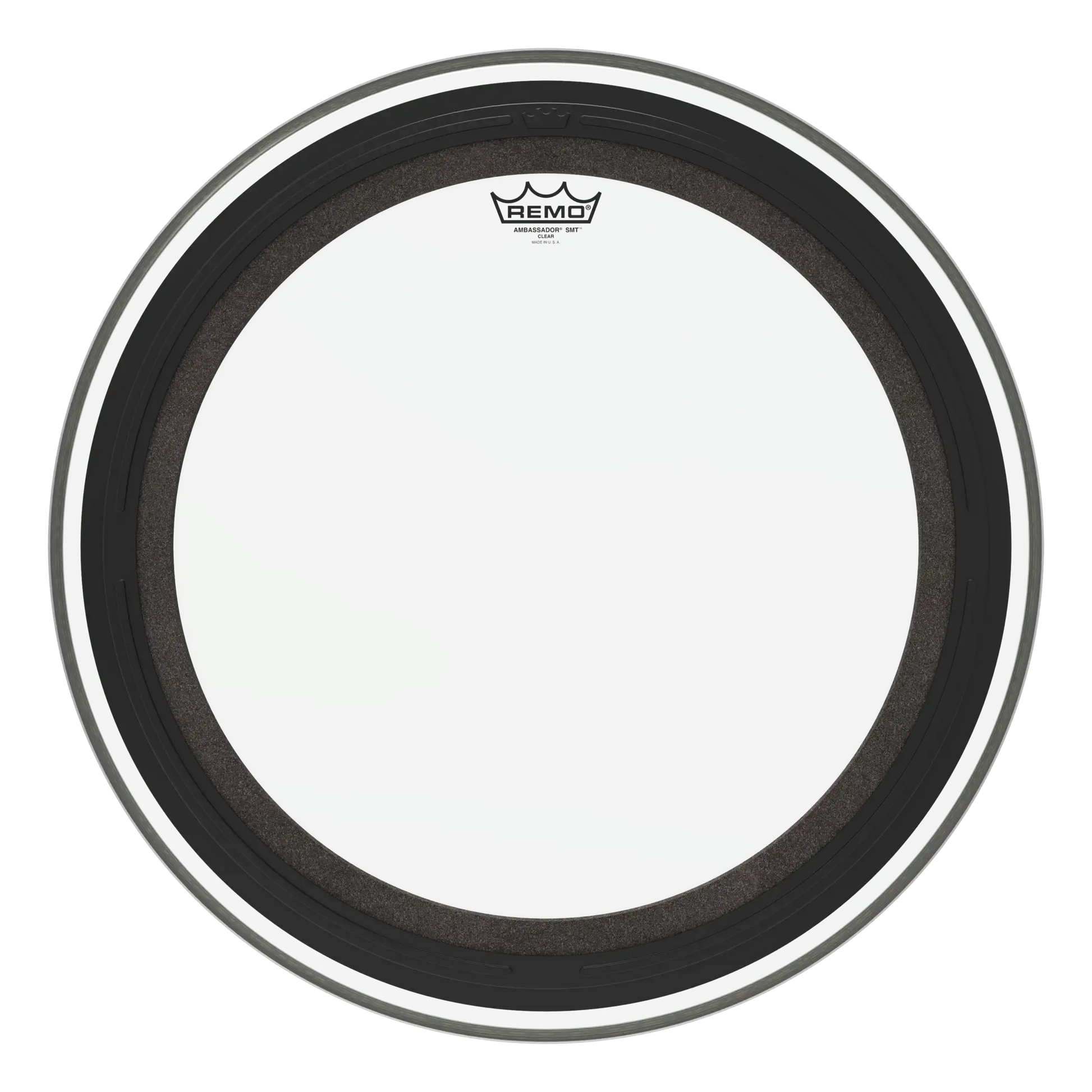 The Ambassador® SMT™ Clear bass drumhead is a pre-muffled design featuring Sub Muffl® Technology.