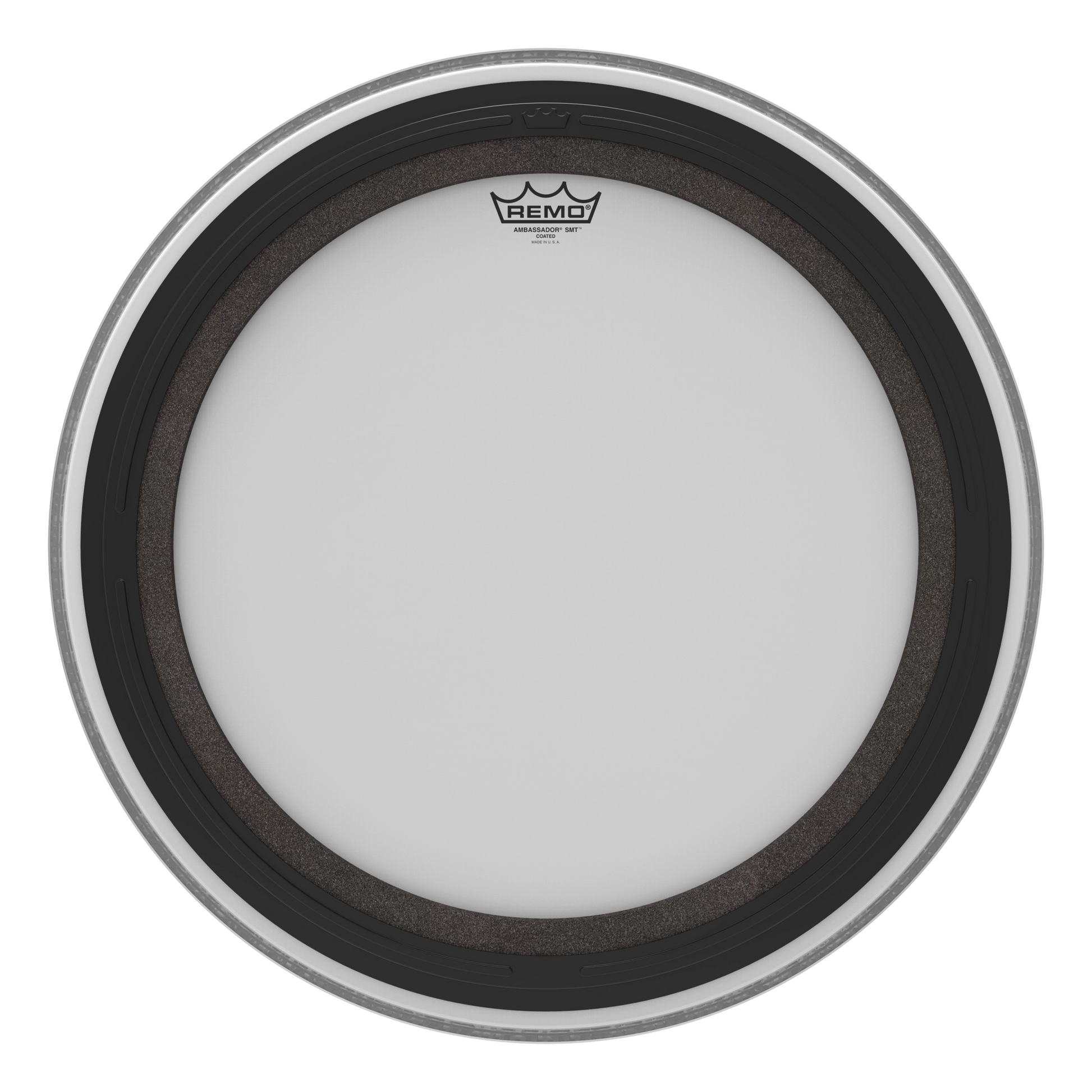 The Ambassador® SMT™ Coated bass drumhead is a pre-muffled design featuring Sub Muffl® Technology.